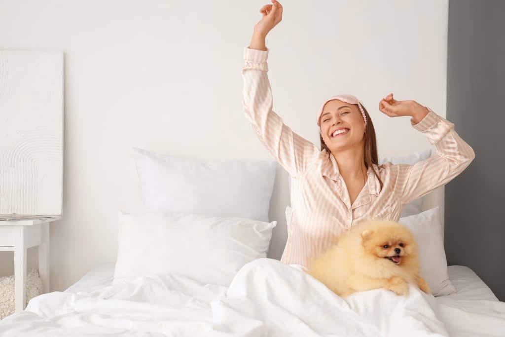 Dogs thrive on routine. Their bodies learn schedules for meals, walks, and playtime, which makes them highly reliable “alarm clocks.” Some pups are gentle, offering a soft wake-up nudge, while others are high-energy and insist you get out of bed immediately—sometimes with a zoom across the room. For dog owners, this consistency can actually help regulate human sleep schedules and establish a positive morning routine.